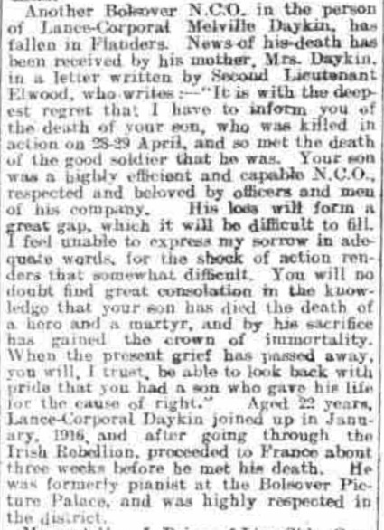Son of Robert and Grace Daykin, of 28, Market Place, Bolsover, Chesterfield, Derbyshire.