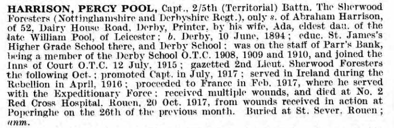 Son of Abraham and Ada Harrison, of 52, Dairy House Road, Derby.