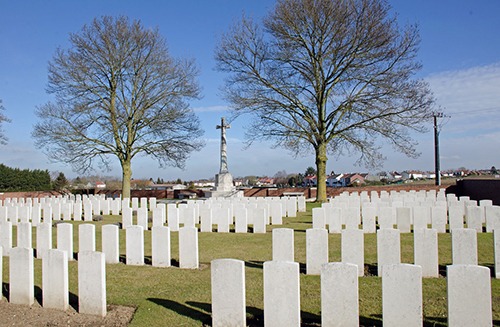 Buried Auberchicourt British Cemetery Plot 3. Row B. Grave 4.
