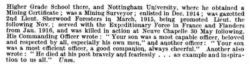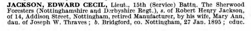 Battalion : 15th Battalion Sherwood Foresters (Notts & Derbys) Regiment.