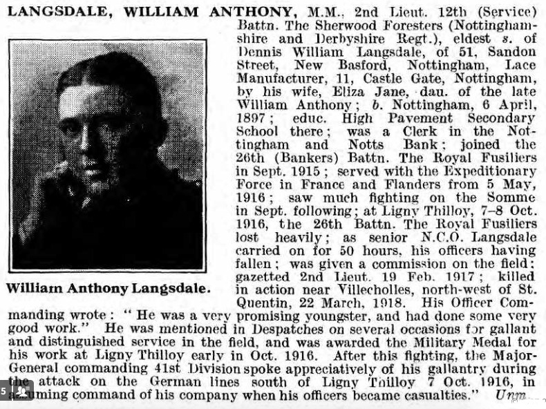 Second Lieutenant William Anthony Langsdale is also commemorated on the following local memorials:-
