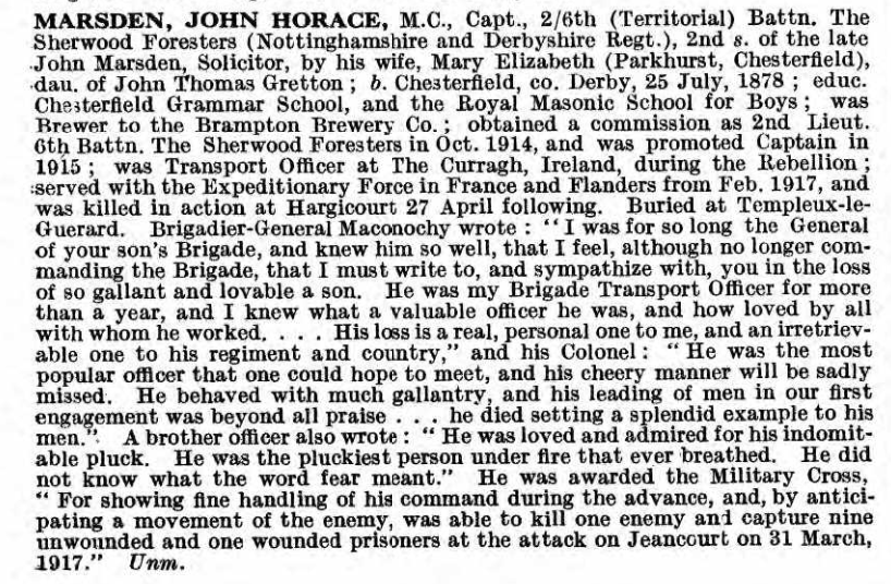 Son of John and Mary Elizabeth Marsden, of 29, Avondale Road, Chesterfield.
