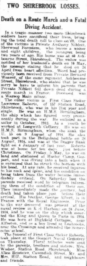 Battalion: 11th Battalion Sherwood Foresters (Notts & Derbys) Regiment.
