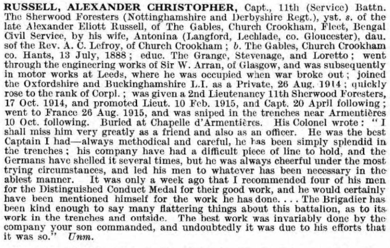 Son of Alexander Eliott Russell And Antonina Russell, of The Coppice, Church Crookham, Hants.