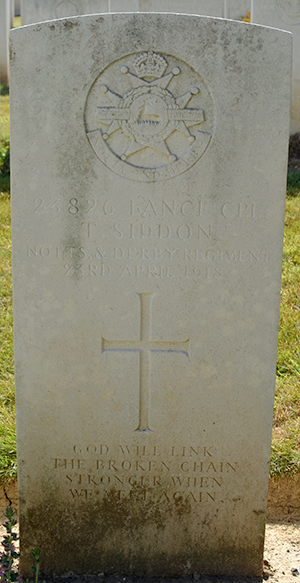 Son of George and Mary Ann Siddon, of Mansfield; Husband of Mary Ann Siddon, of 10, Brickyard Row, Mansfield, Nottinghamshire.
