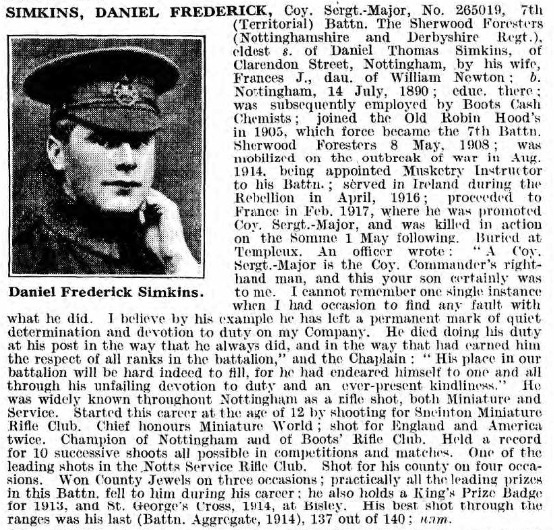 Son of Daniel and France.s Simkins, of “Hill Crest,” Sutherland Road, Nottingham.