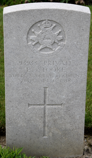 His three brothers, Air Mechanic 1st Class Arthur Augustus Stooke, Royal Flying Corps, Sapper Frank Stooke, Royal Engineers and Private Frederick Stooke, Coldstream Guards, also fell in the Great War.