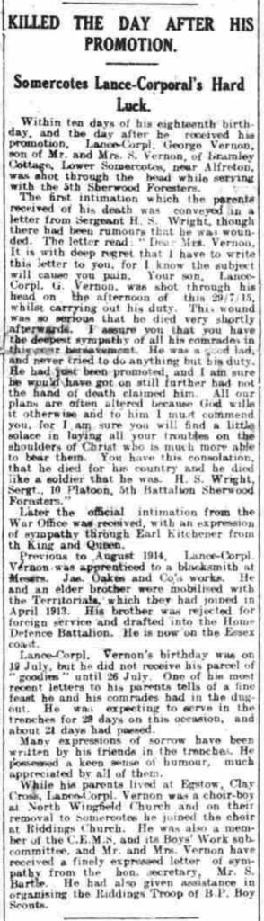 Battalion: 1/5th Battalion Sherwood Foresters (Notts & Derbys) Regiment.