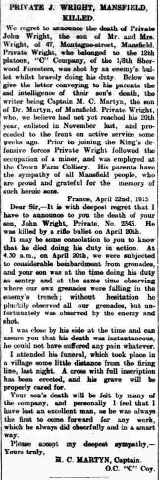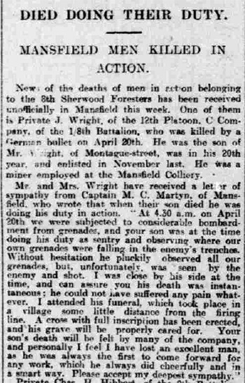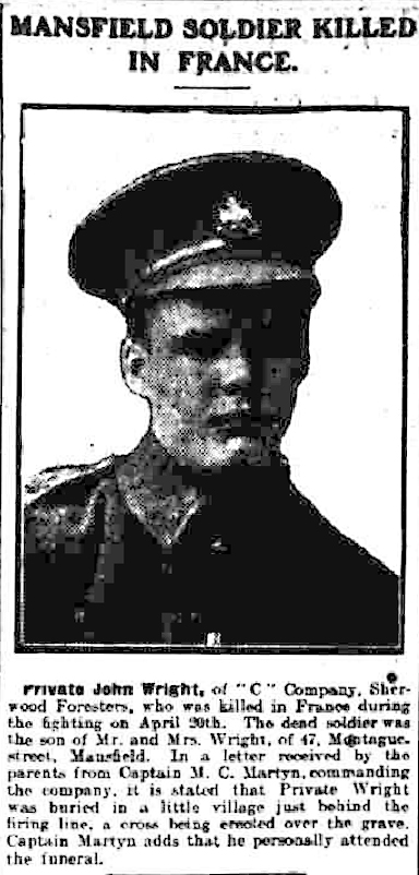 Son of Joseph and Florence Wright, of Mansfield, Nottinghamshire.